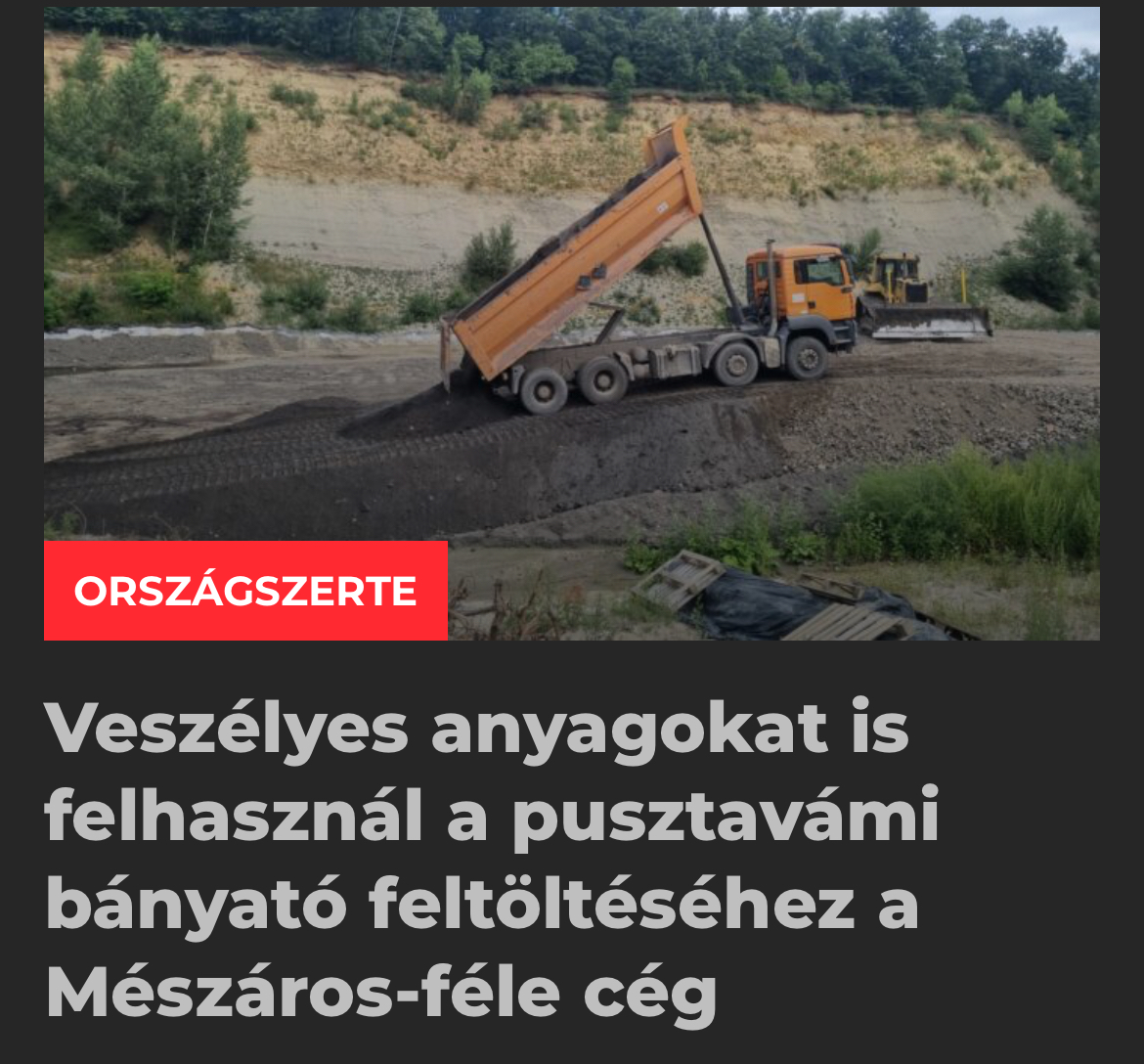Az Átlátszó ismét megtalálta a heti "Mészáros-botrányt": szerintük a pusztavámi Cica-homok bányatavat "veszélyes anyagokkal" temetik be, és ezzel "pusztítják a természetet". A valóság ezzel szemben sokkal egyszerűbb: hatóság által előírt, engedélyezett rekultiváció zajlik. Vagyis pontosan az, amit minden bányatulajdonosnak kötelező elvégeznie.